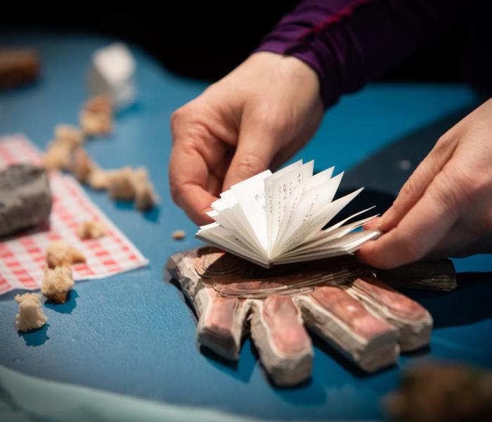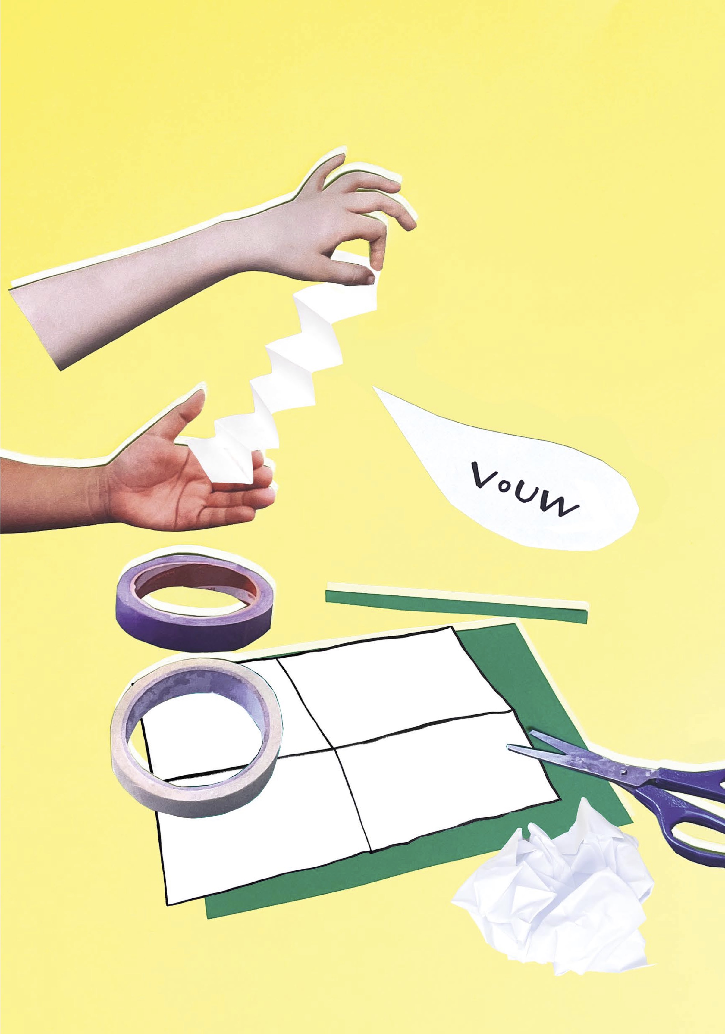 VOUW is een ode aan de kracht van mensen en verbeelding. Zo meander je langs mensenlevens vol ezelsoren, kreukels en scheuren.