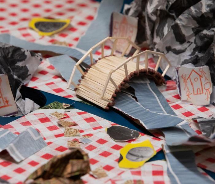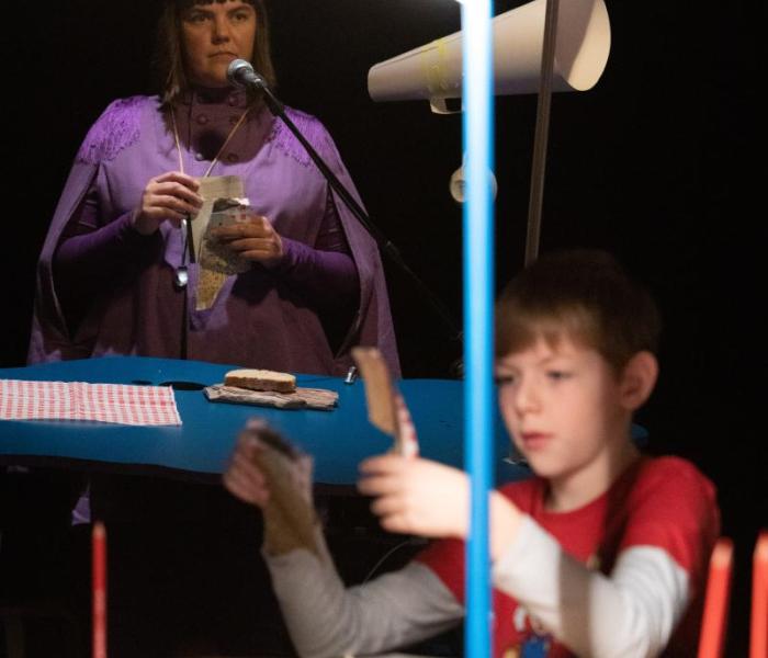 Annelies Van Hullebusch en Wanda Eyckerman creëerden vorig seizoen samen de fel geroemde kleutervoorstelling Papierlied. Met VOUW maken ze opnieuw samen een tactiele voorstelling, maar geven ze het publiek een belangrijke rol.