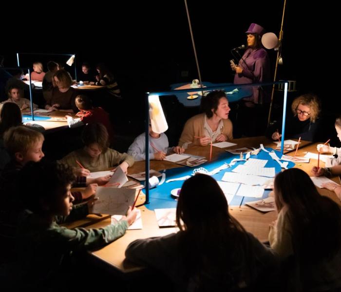 VOUW is een beeldende doe-voorstelling en theatraal luisterboek. Het is een theatervoorstelling in samenwerking met het publiek. Handen bouwen aan beelden, beelden illustreren stemmen, stemmen nemen je mee naar het onbekende en geluiden zuigen je mee naar een andere wereld.