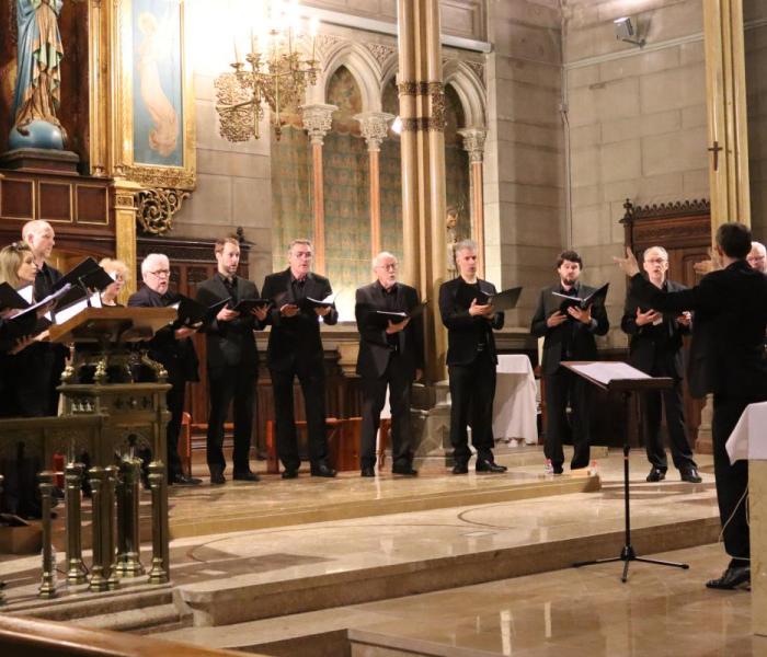 Het Quilisma Ensemble treedt op onder leiding van dirigent Koenraad Vertichel.