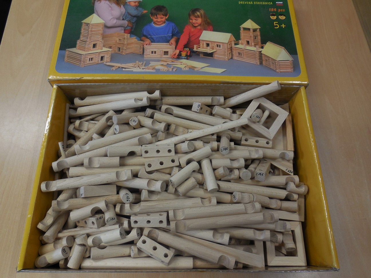Motorisch zijn de bouwstaafjes gemakkelijk te manipuleren maar het vraagt toch wel wat inzicht om tot het bouwen van een blokhut te komen.