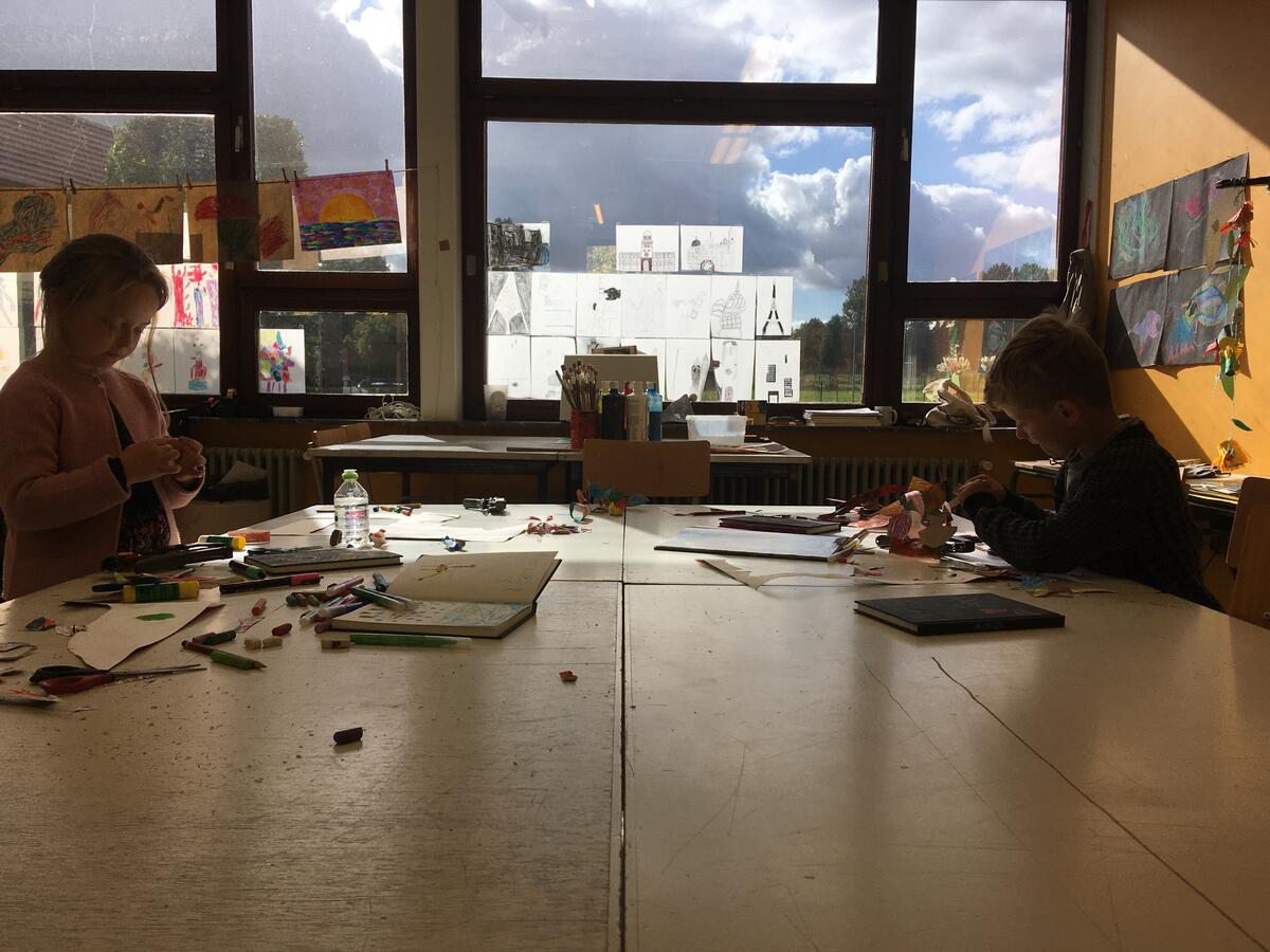 De jongste leerlingen ontdekken via allerhande opdrachten een heel ruim aanbod aan beeldende mogelijkheden en technieken. De onderwerpen zijn divers en oneindig: dieren en planten, actuele kunst, boeken, waarneming,... De leerlingen leren verschillende materialen correct gebruiken en zoeken eigen oplossingen. Een waaier aan technieken komt aan bod: houtskool, naaien, boetseren, timmeren, knippen, kleuren,...