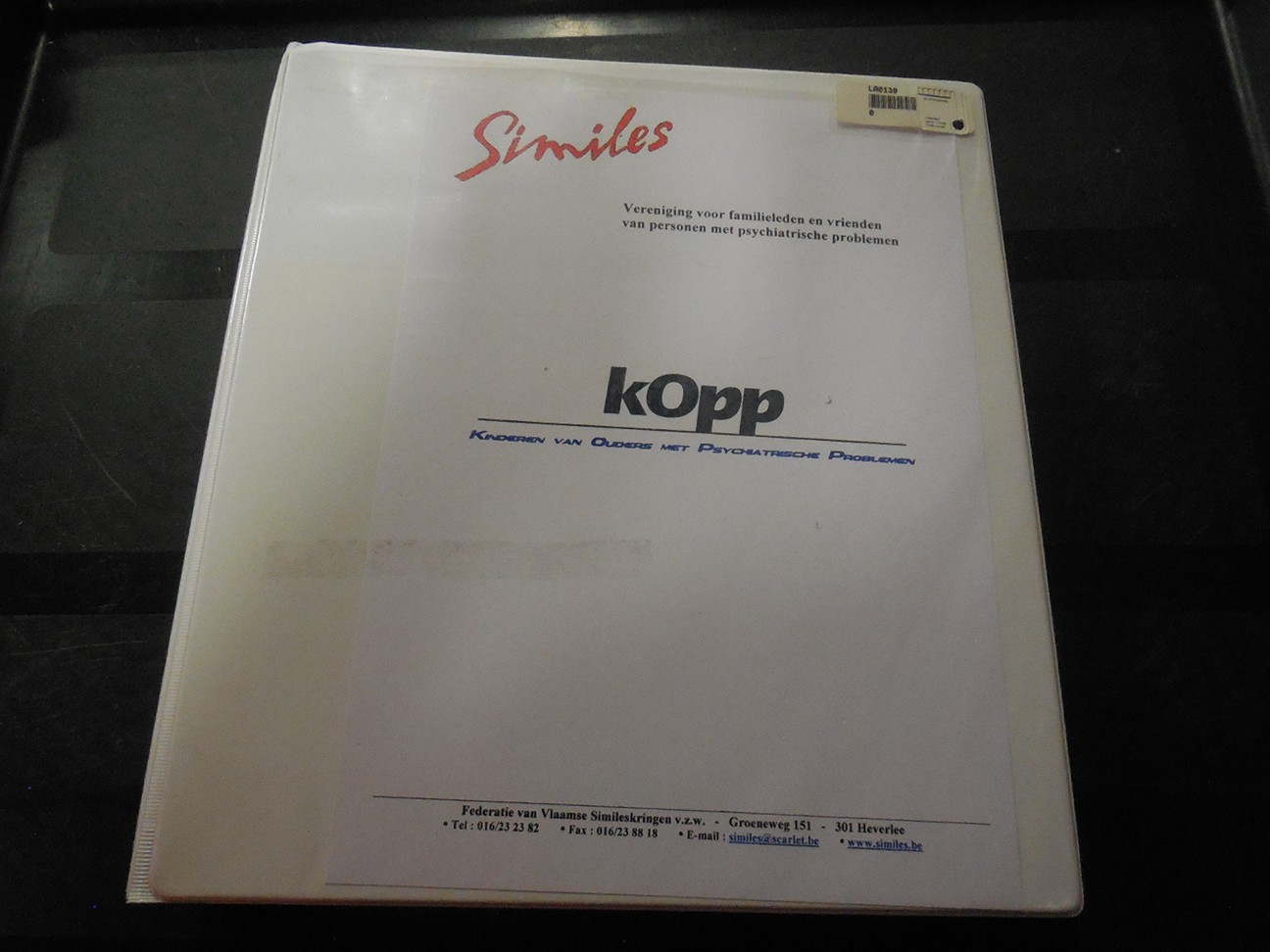 Veel kinderen en jongeren die een ouder hebben met een ernstige psychiatrische problematiek, KOPP-kinderen genaamd , komen in opvoedingssituaties terecht die niet zo gemakkelijk te hanteren zijn en zelfs een risico inhouden voor hun eigen psychische en lichamelijke gezondheid. Kinderen en jongeren zitten middenin belangrijke ontwikkelingen. Ze moeten leren vertrouwen hebben in de buitenwereld, leren omgaan met stresssituaties, hun zelfbeeld wordt opgebouwd… En net op dat moment worden ze geconfronteerd met situaties thuis die hun eigen ontwikkelingsniveau overstijgen…belemmeren. Ze belanden te midden van gebeurtenissen waarvoor ze eigenlijk nog niet klaar zijn… Dikwijls vanaf hun prilste levensjaren al, missen ze de veiligheid, de geborgenheid en de stabiliteit van een psychisch gezonde vader én moeder. Psychisch ziek zijn eist immers veel zorg, bijzondere aandacht en draagkracht op van de ouders waardoor hun ouderrol in het gedrang komt zelfs in die mate dat de kinderen op hun soms onzichtbare onbegrepen manier gaan zorgen voor de ouders en de gezinsstabiliteit. Onderzoeken tonen aan dat 1/3 van deze kinderen zélf als negatief gevolg van de KOPP-situatie, psychiatrische stoornissen ontwikkelen, vaak op het gebied van veiligheid, geborgenheid en stabiliteit. Het Kopp kind moet begeleid worden doorheen zijn ontwikkeling , hoe kijken,hoe te spreken, hoe leren omgaan met zijn eigen leefsituatie…. voor deze begeleiding is een klare en ruim gedocumenteerde kijk noodzakelijk op KOPP. Met dit doel is dit infopakker samengesteld in deze map om zelf in de eerste fase KOPP-kinderen te leren begrijpen. De inhoud van de map: - de situatie van en door de KOPP-kinderen - belangrijke psychiatrische ziektebeelden, de organisatie van geestelijke gezondheidszorg - de KOPP thematiek, gedichten, stellingen, concrete aanpak,literatuurlijst - zie ook de video: mijn gids is zelf verdwaald”, brochure: mijn papa blijft toch mijn papa, wegwijzer zelfhulpgroepen voor nabestaanden na zelfdoding.