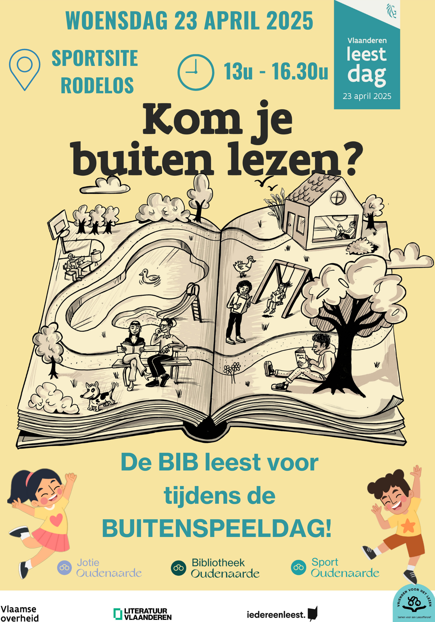 Buitenspeeldag vindt dit jaar plaats op woensdag 23 april. Niet alleen kinderen maar ook jongeren zullen hun hartje kunnen ophalen in openlucht met ingrediënten als een springkasteel, sport- en spelmateriaal, een voetbalkooi en het skatepark. Er wordt ook gelezen en voorgelezen in openlucht, want het is Wereldboekendag!